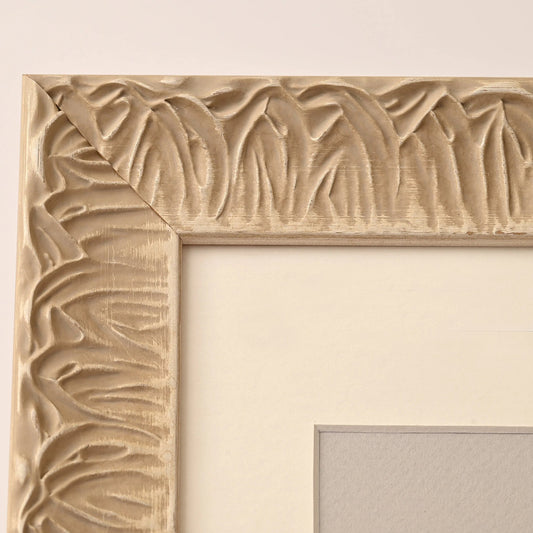Raised Ornate Patterned Frame With Sand Beige Finish On Scooped Profile