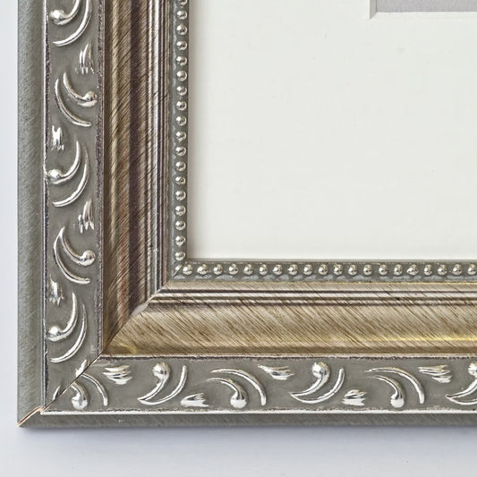 Elegant Vintage Brushed SilverFrame with Beaded Accents
