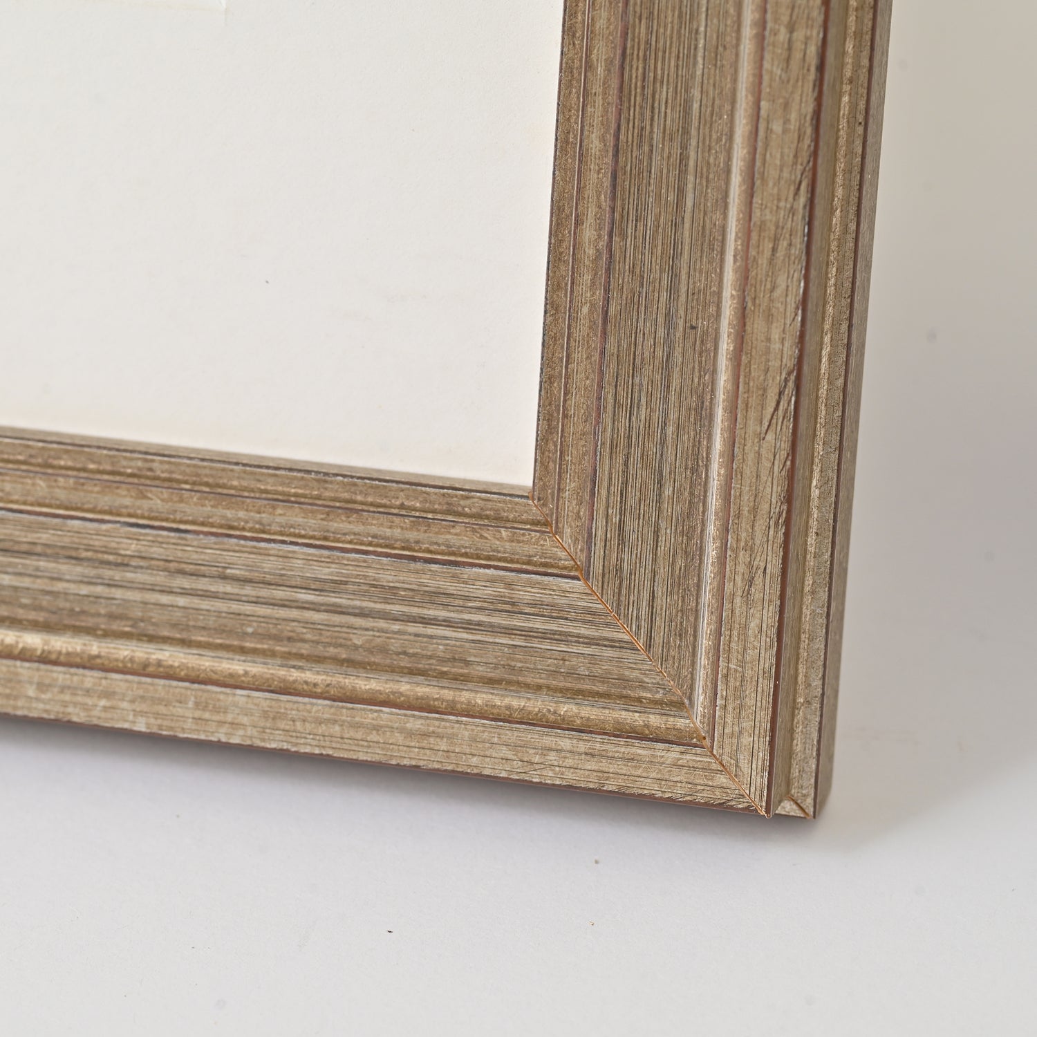 - brushed, subtly antiqued silver finish with warm undertones on a traditional step profile