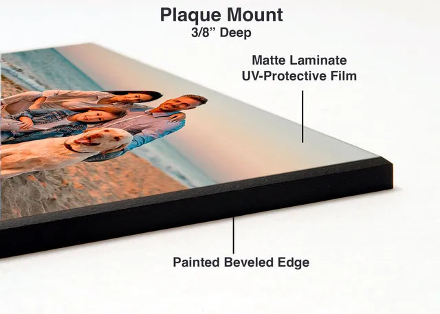 Lightweight yet long-lasting, plaque mounted prints are perfect for everything from family portraits to gallery-style displays, giving your memories a bold, contemporary presence that truly stands out. Since there is no glass, they are safe and easy to hang.