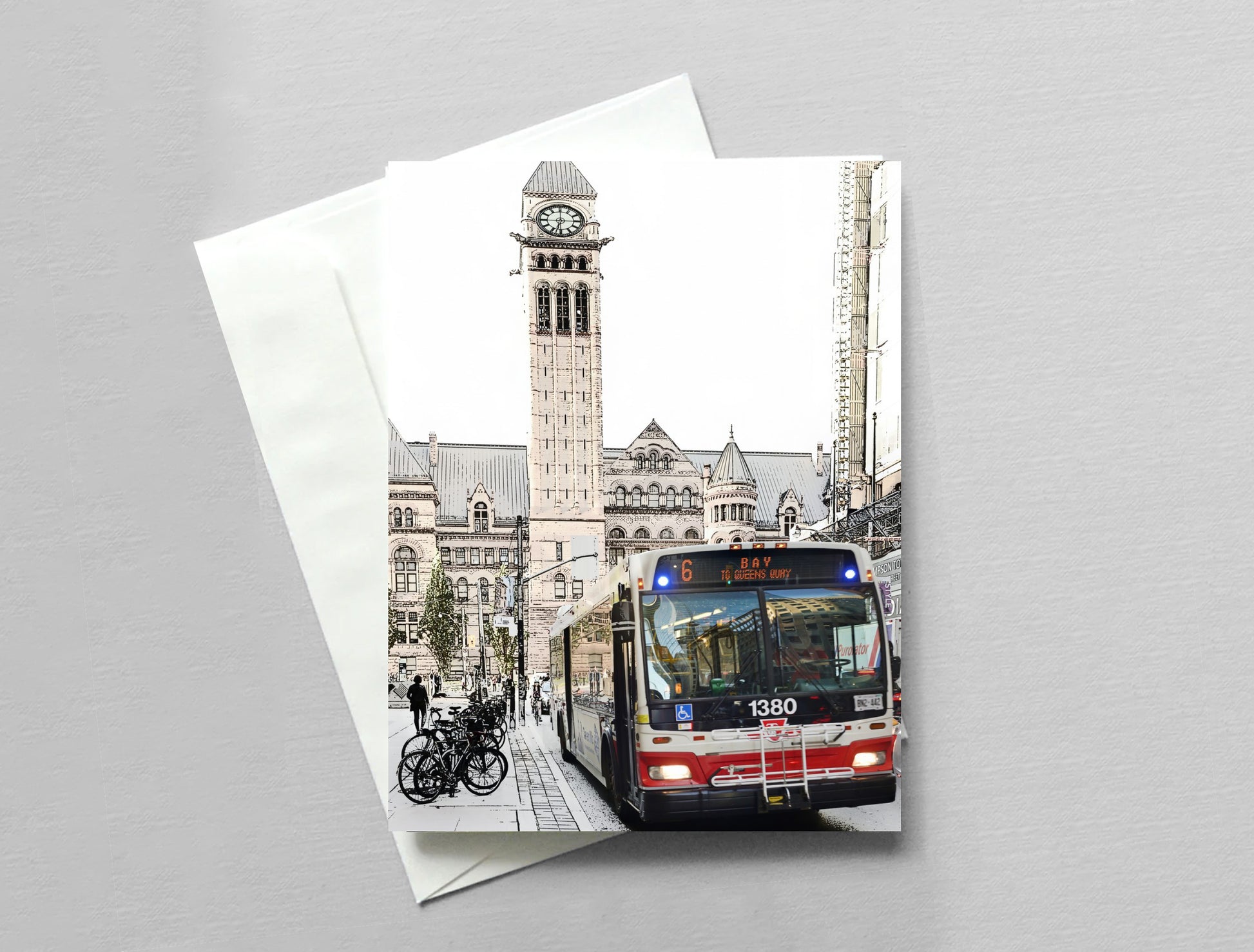 Bay Street, just South of Queen St. A nice route: gets you into the business district quickly from the Bloor line. Old City Hall in the background.