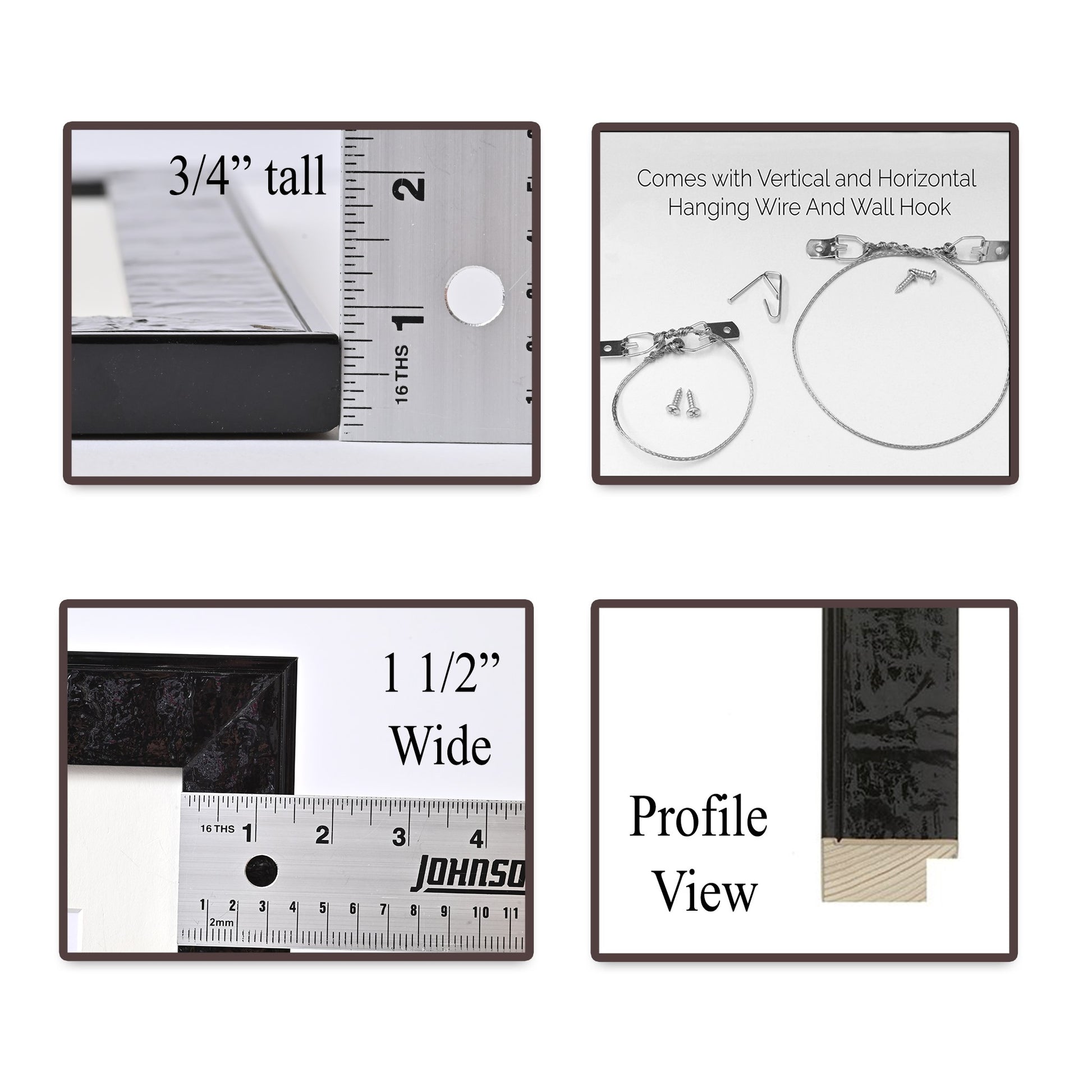 With pre-drilled screw holes and pre-made hanging wires for both vertical and horizontal orientations, its easy to hang up your new frame. All you need to install the hanging wire is a screwdriver! Each frame also comes with an included wall hook for easy hanging.