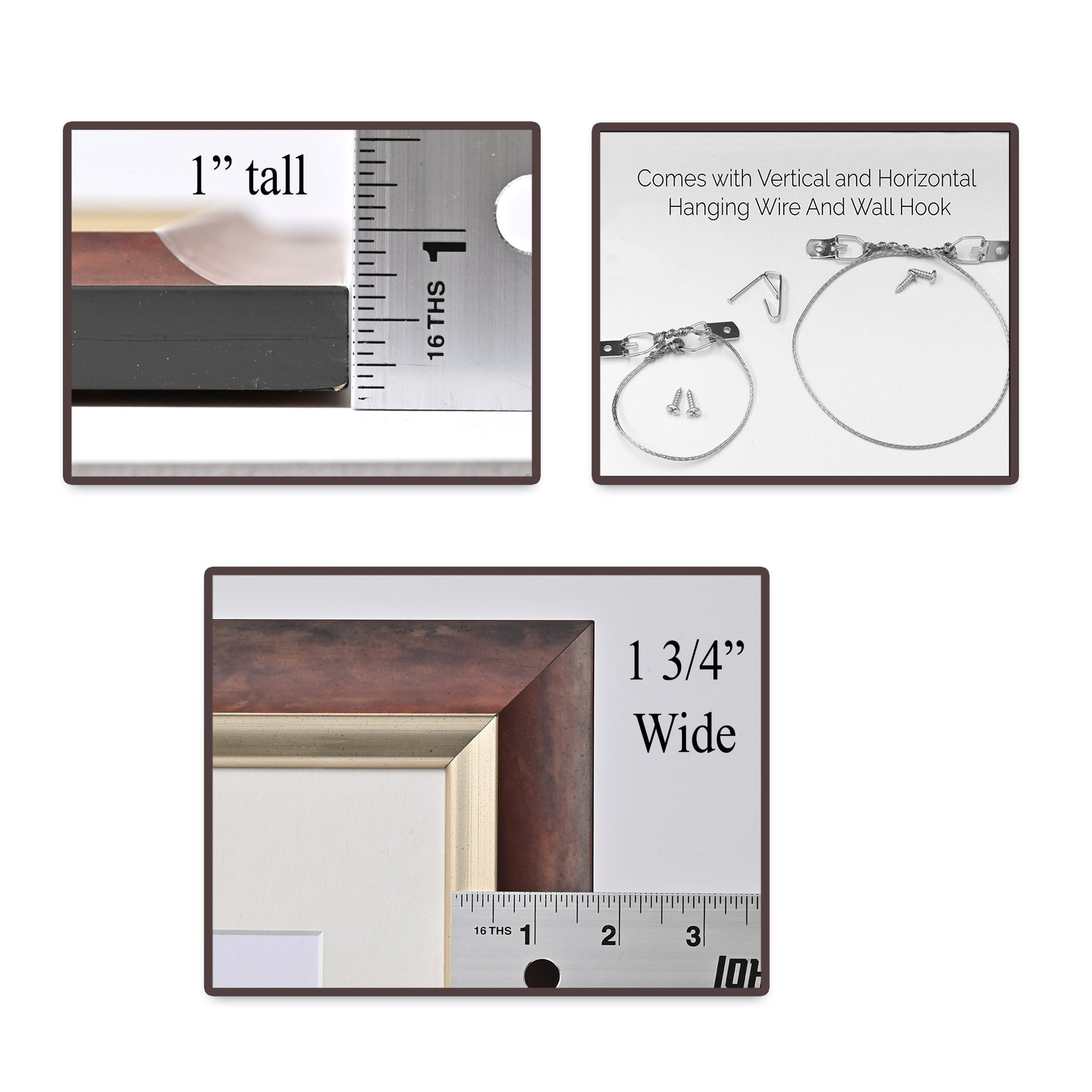 With pre-drilled screw holes and pre-made hanging wires for both vertical and horizontal orientations, its easy to hang up your new frame. All you need to install the hanging wire is a screwdriver! Each frame also comes with an included wall hook for easy hanging.